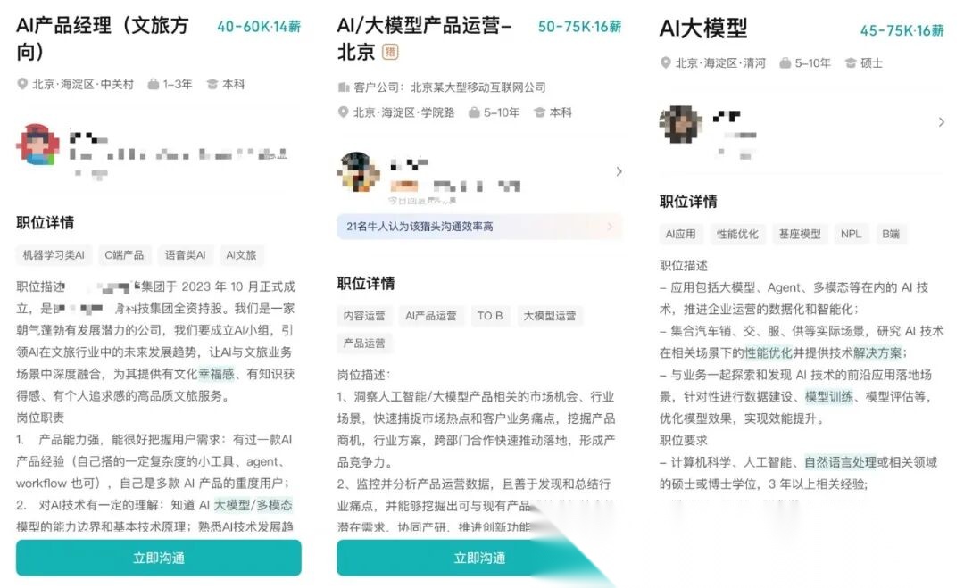 - 中小公司:甚至很多传统企业(比如制造业、医疗公司)都在招“会用大模型的人”,要求不高但薪资可观;