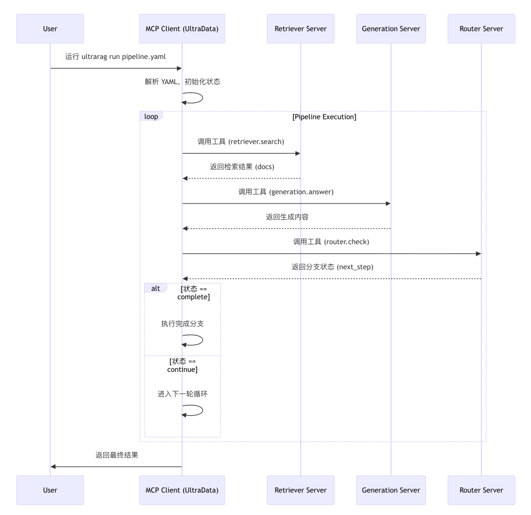 在 UltraRAG 中,检索器(Retriever)、生成器(Generator)、路由器(Router)等都被封装为独立的 MCP Server。