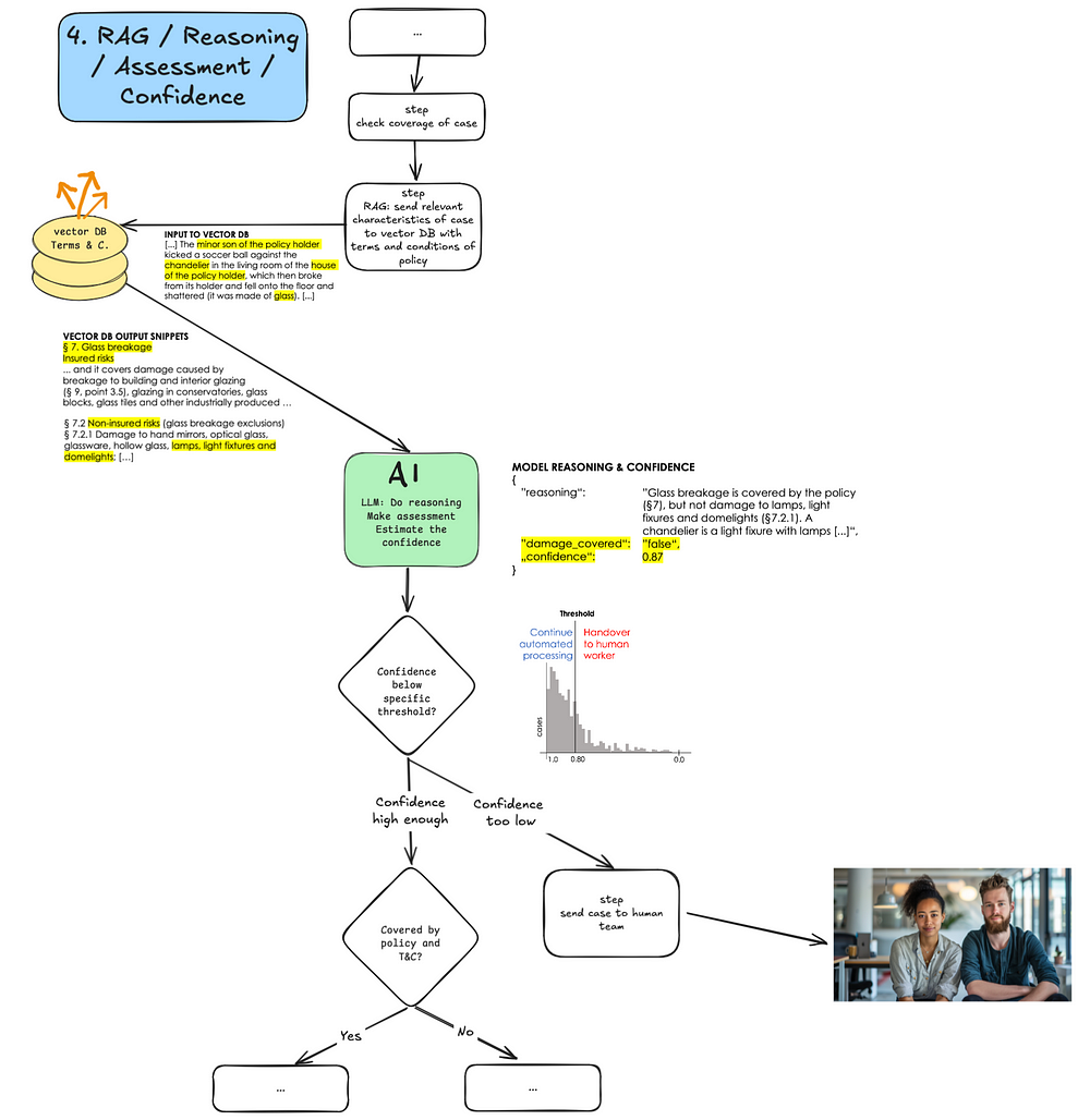 基于这一分类判断,系统会启动相应的处理路径(processing lane)。这一步往往不仅仅是函数调用[1],而是涉及到对整个流程的基本决策(例如属于哪一类理赔),后续触发多个独立的处理步骤。这就是智能体在流程第一步的职责,理解需求 → 分类判断 → 进入具体处理流。