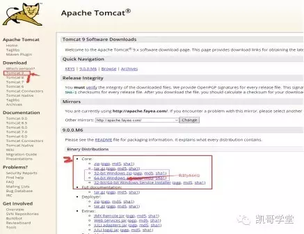 在Download下面找对应版本的tomcat,我在这里选择最新版的tomcat9(一般都是选择稳定的版本7或8)。