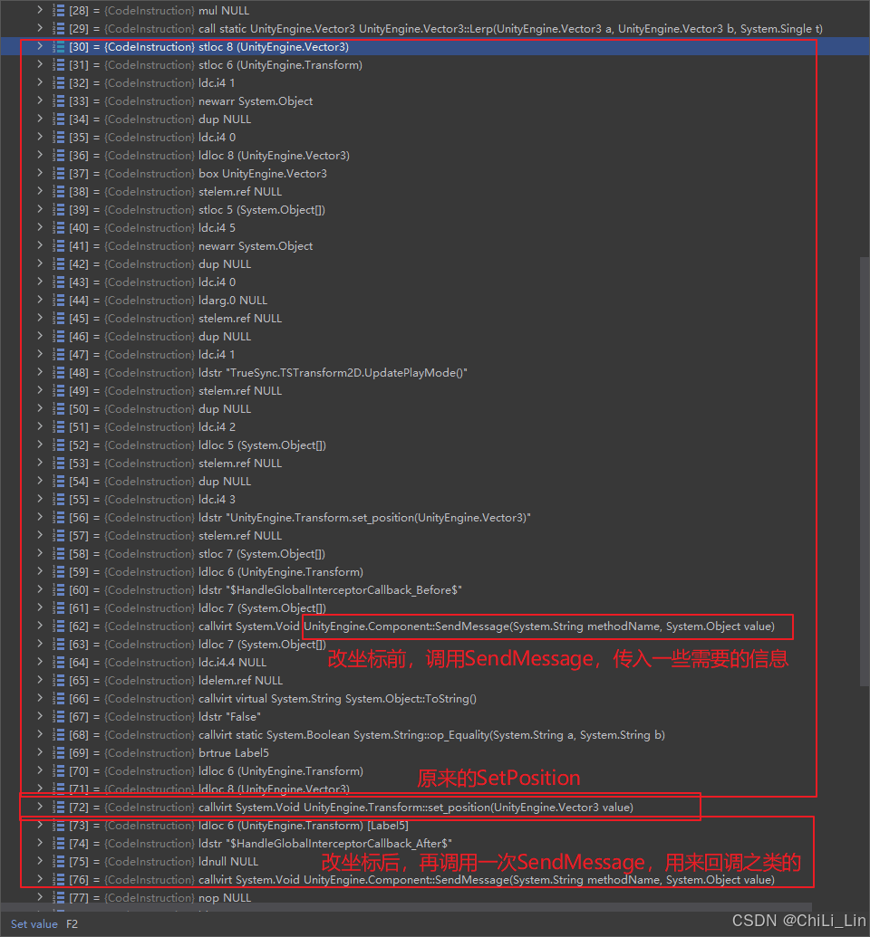 现在提供另一种思路,在所有C#代码改变坐标的地方,注入代码,实现监听所有改变坐标的代码调用情况。