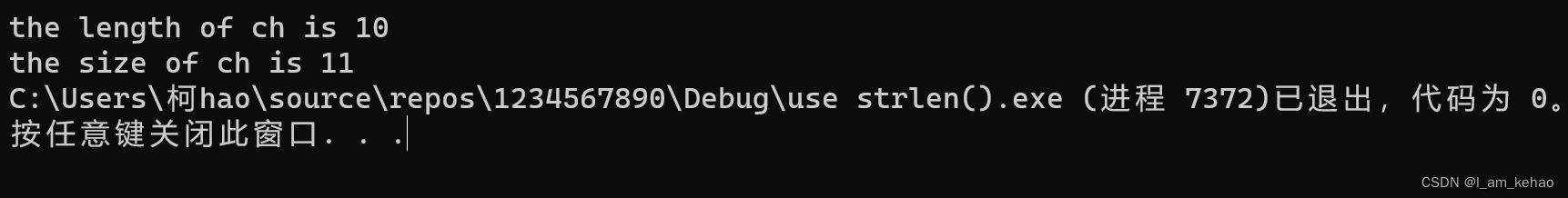 //计算字符串中在''\0''之前的长度(在计算机的存储中默认以''\0''结束字符串)