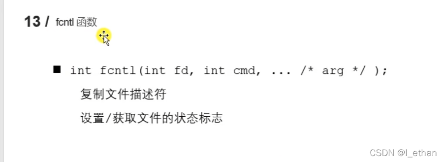 1.F_DUPFD:复制文件描述符,复制的是第一个参数fd,得到一个新的文件描述符