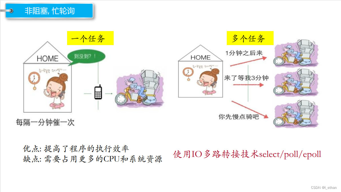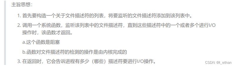 I/O 多路复用使得程序能同时监听多个文件描述符,能够提高程序的性能,Linux 下实现 I/O 多路复用的 系统调用主要有 select、poll 和 epoll。