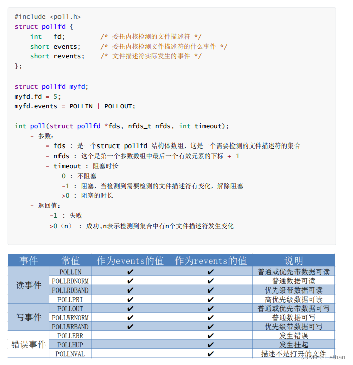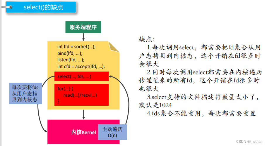 对select缺点进行一个改进(没有解决内核态和用户态转变的问题,只是解决了1024比特位的限制以及不能重用每次都需要重置的问题)同时也可以复用了
