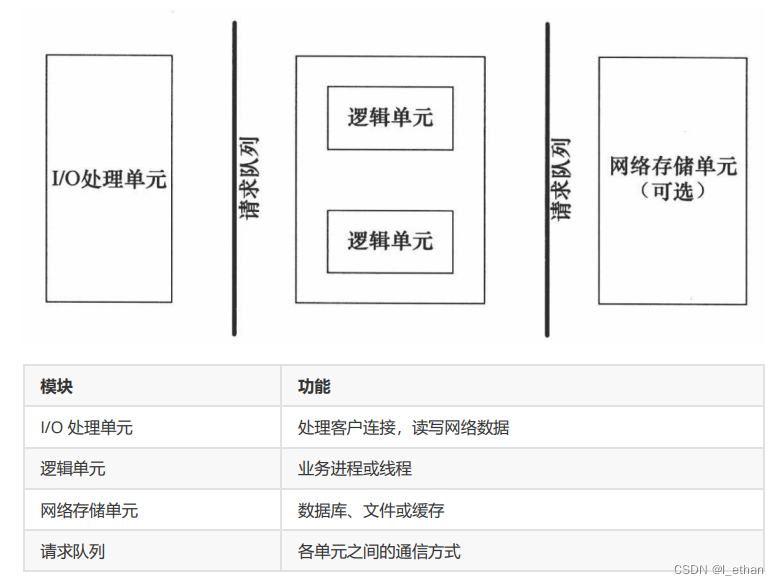 请求队列是各单元之间的通信方式的抽象。I/O 处理单元接收到客户请求时,需要以某种方式通知一个 逻辑单元来处理该请求。同样,多个逻辑单元同时访问一个存储单元时,也需要采用某种机制来协调处理竞态条件。请求队列通常被实现为池的一部分。
