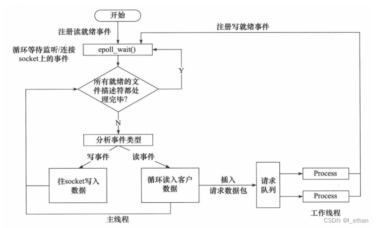 要求主线程(I/O处理单元)只负责监听文件描述符上是否有事件发生,有的话就立即将该事件通知工作 线程(逻辑单元),将 socket 可读可写事件放入请求队列,交给工作线程处理。除此之外,主线程不做任何其他实质性的工作。读写数据,接受新的连接,以及处理客户请求均在工作线程中完成。