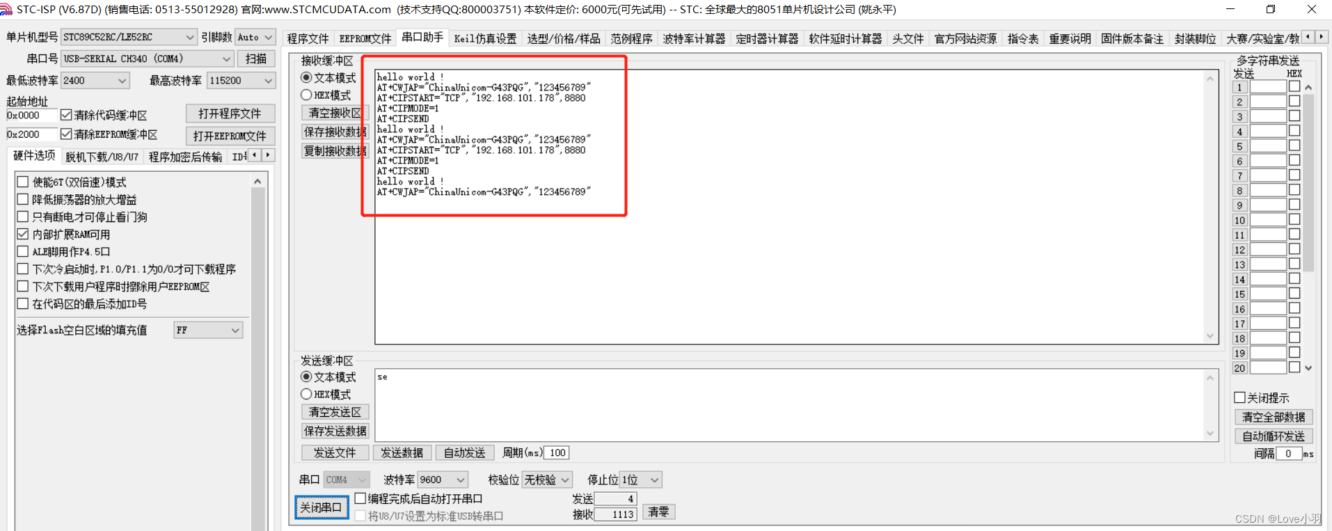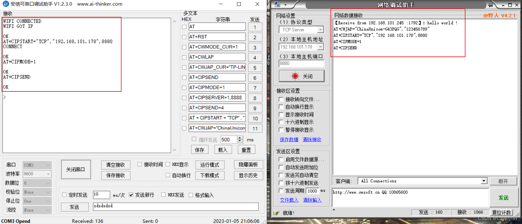 开始连接服务器,打开串口工具,把命令输入到下方的串口调试助手中