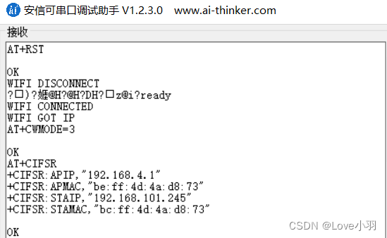 +CIFSR:STAIP,"192.168.101.245" ----->一般IP地址是这个(这个是我自己用的IP地址哈)