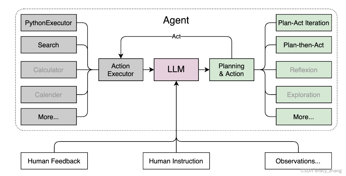 - Agent:与 Model 的输入接口保持一致,模型到智能体的蜕变只需一步,便捷各种 agent 的探索实现;