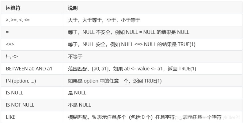 where是一个约束声明,在查询数据库的结果返回之前对查询结果进行约束,即在结果返回之前起作用,且where后面不能使用聚合函数(因为where执行在聚合函数之前)