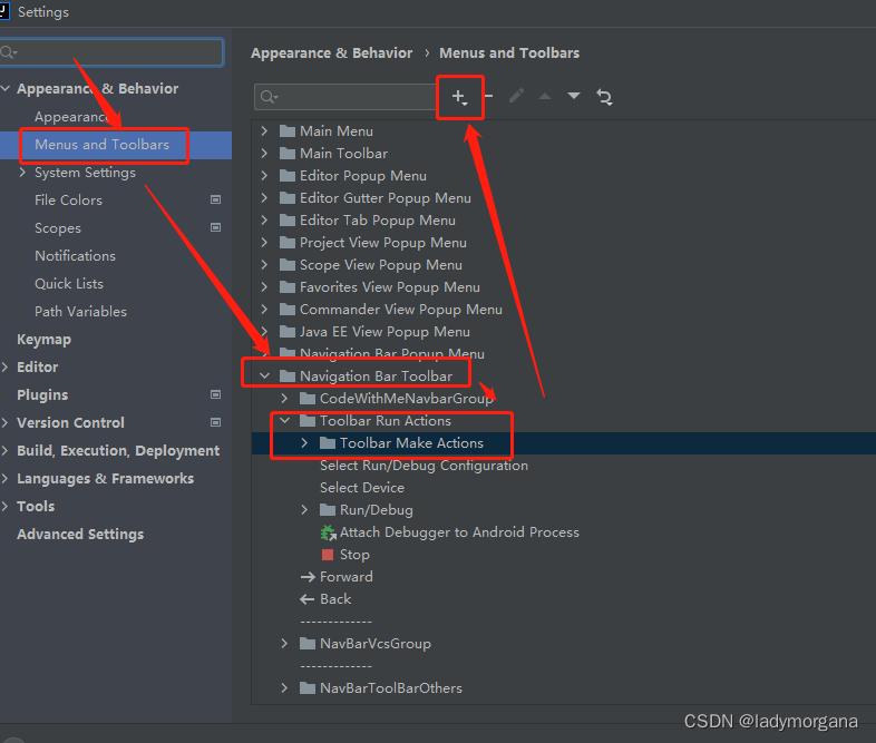 Step1:File --> Menus and Toolbars --> Navigation Bar Toolbar--> Toolbar Run Actions--> Toolbar Make Actions--> Add Action