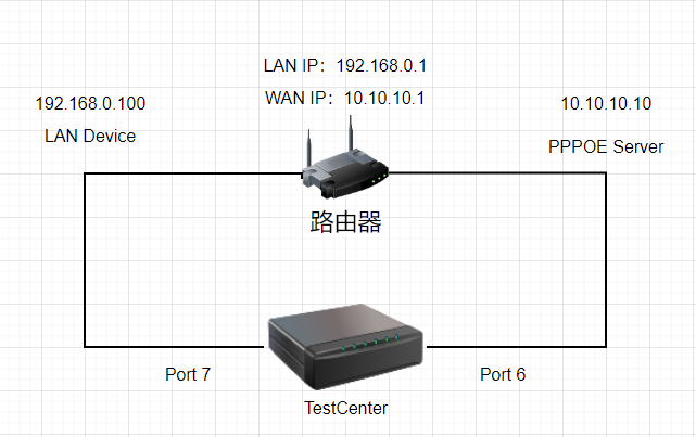 TestCenter的Port7接口连接到路由器的LAN口,Port7接口连到路由器的WAN口