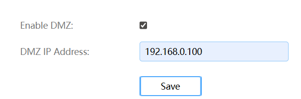 并将192.168.0.100设置成DMZ主机,以备测试下行流
