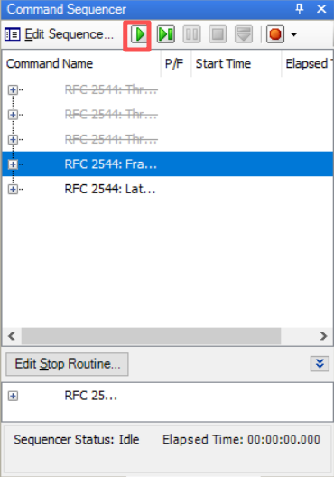 9、在右边弹出窗口【Command sequencer】,显示当前已经创建的任务;如果没自动弹窗,可以点击【Sequencer】,点击三角符号开始测试