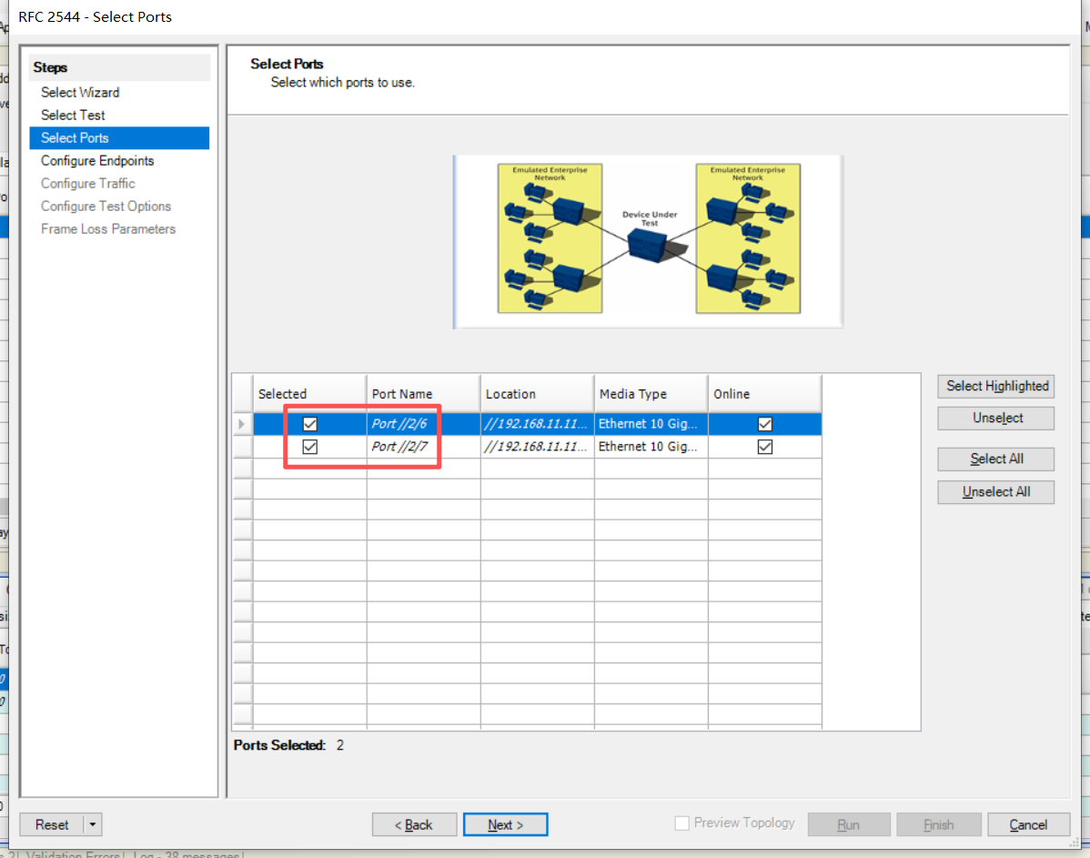 4、在【Select Port】页面,默认勾选之前使用的两个接口port6和port7,保持不变,进入下一步