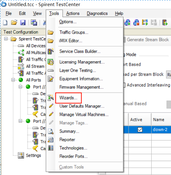 TestCenter支持通过向导创建RFC2544丢包率测试任务