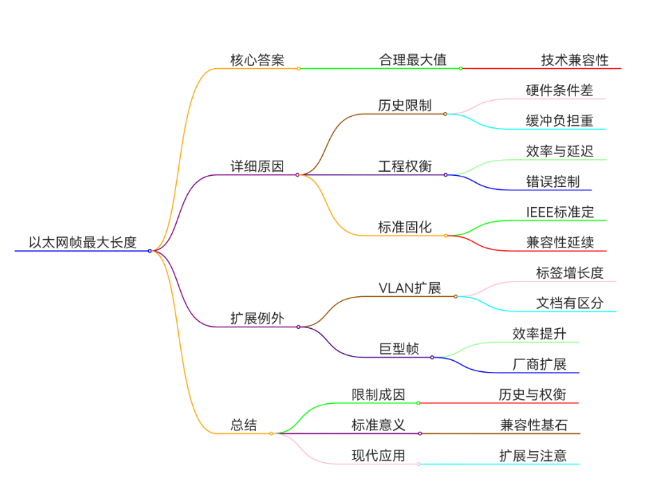 因为历史技术限制以及工程权衡,IEEE最终将最大帧长限制为1518字节,并写入 IEEE 802.3 标准,成为所有以太网设备必须遵守的规范,确保