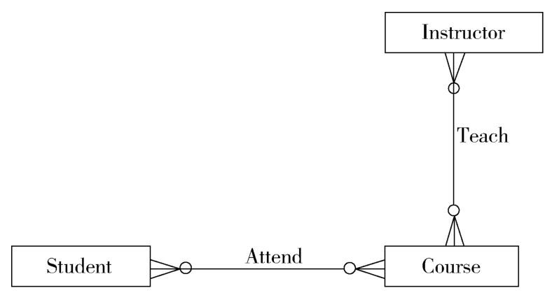 关系是实体之间的关联,体现实体间的交互和约束。体现为关系数据库中的外键、非关系型数据库中通过边界或链接。示例如下