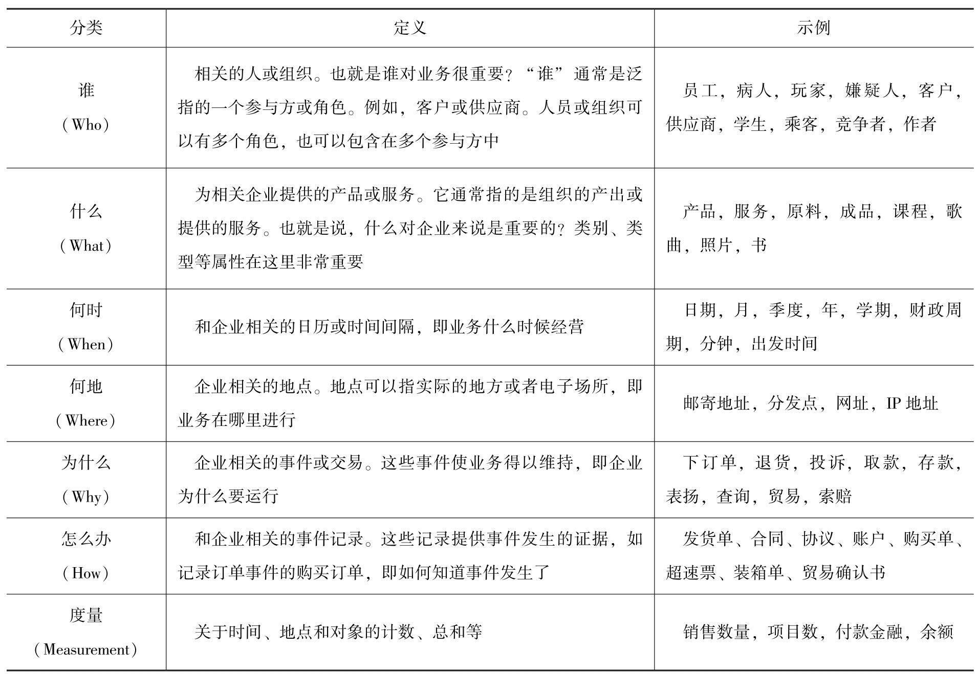 建模的数据类型:类别信息(分类和分配事物类型);资源信息(基本数据、资源实体);业务事件信息(操作过程中创建的数据);详细交易信息