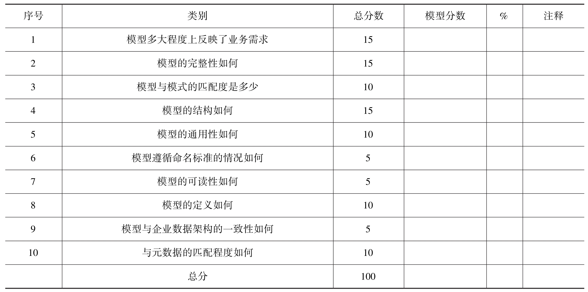 数据模型计分卡