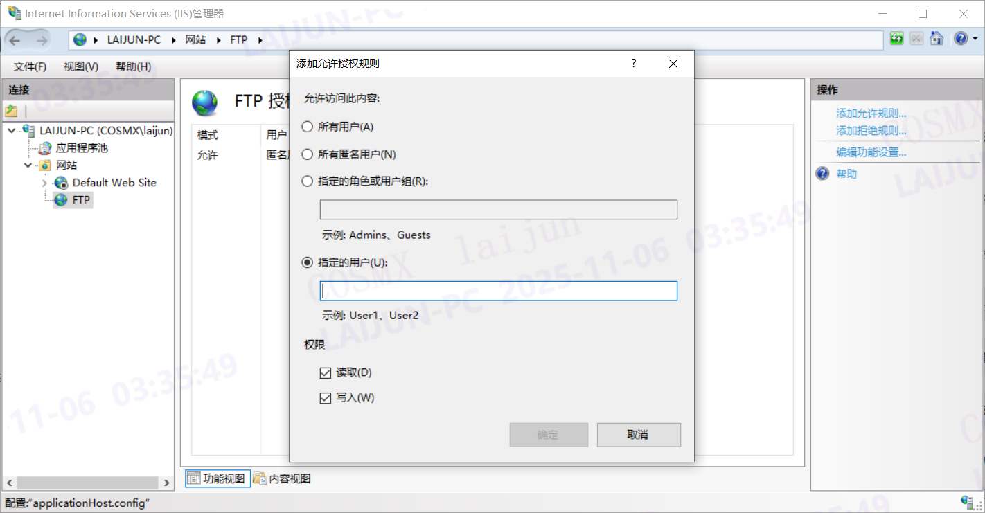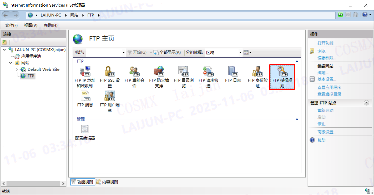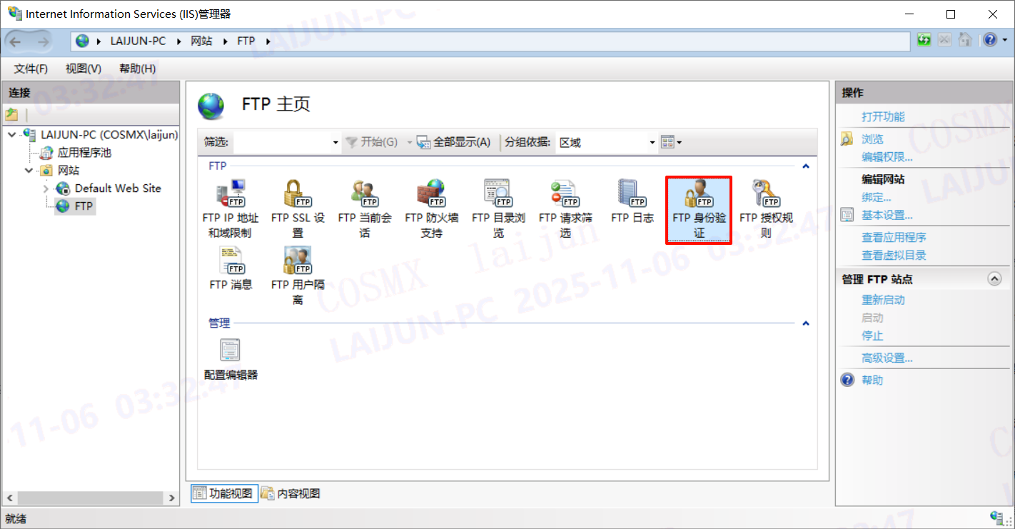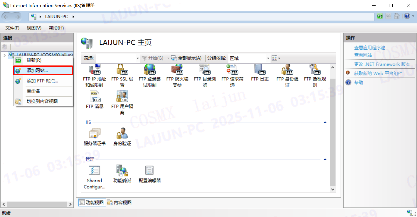 当在局域网中想共享文件时,共享有时候不稳定可以使用windows自带的FTP服务器用来文件交互