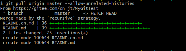 --allow-unrelated-histories是可选项,如果不加,git 会输出 refusing to merge unrelated histories 无法 pull 内容