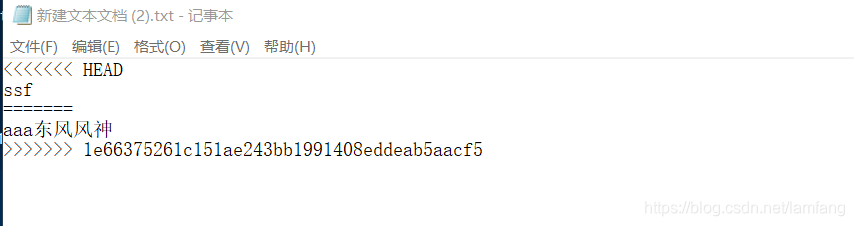 <<<HEAD是指主分支修改的内容,=====是两个冲突内容的分隔符,>>>>>是指分支上修改的内容(因为我是直接在码云上修改文件的,所以这里显示一连串字符)