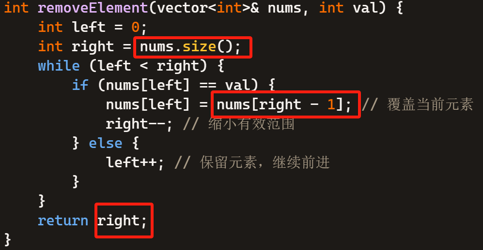 这里的right刚开始就表示数组的size,故最终直接返回right,即为新数组的size。