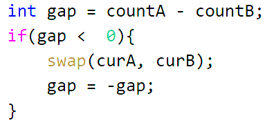 关键步骤是对A、B链表更长的时候进行转换,让代码更简洁。
