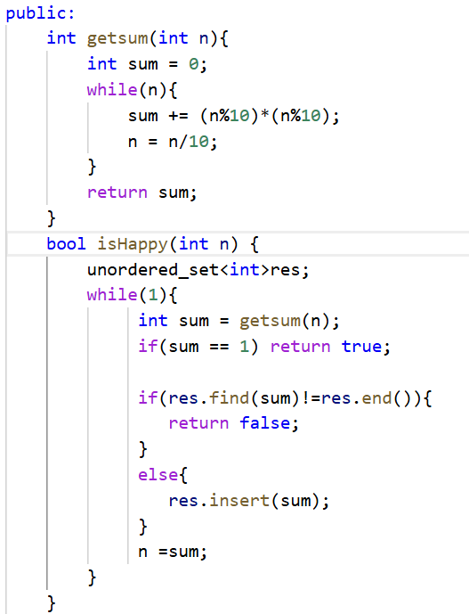 主要是把和的值记录在hash中,若出现之前存在的值就表示结果循环,即数不快乐了。