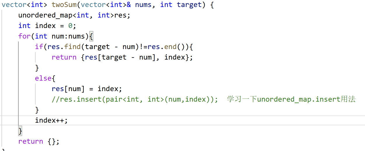 这次尝试用for(int num:nums)的方法迭代器方法来遍历nums数组,创造一个index来记录当前数在数组的下标。