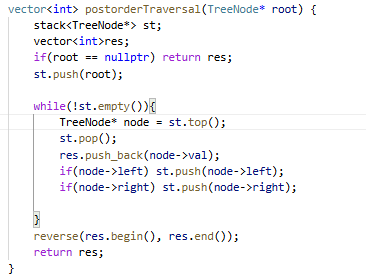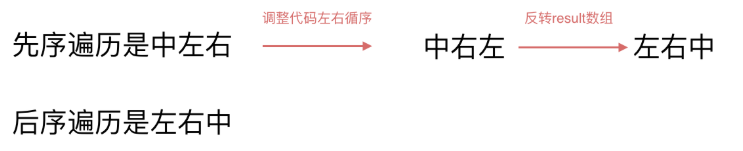 但是先序入栈顺序是中右左,所以后序入栈顺序反而是中左右。