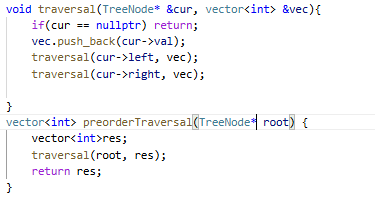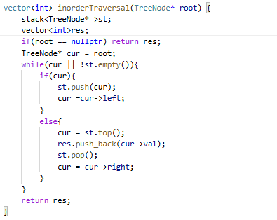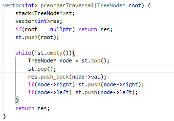 利用栈进行 中-右-左的顺序进行入栈出栈操作,对栈顶元素进行循环遍历。