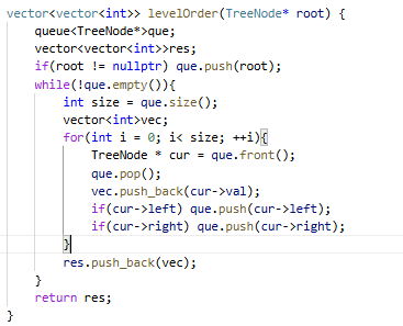 返回结果为嵌套数组,在每层遍历循环中定义一个数组,作为嵌套数组的层序遍历结果。