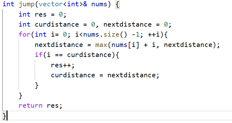 当遍历到的值刚好为curdistance时,步数+1,并且记nextdistance为curdistance.