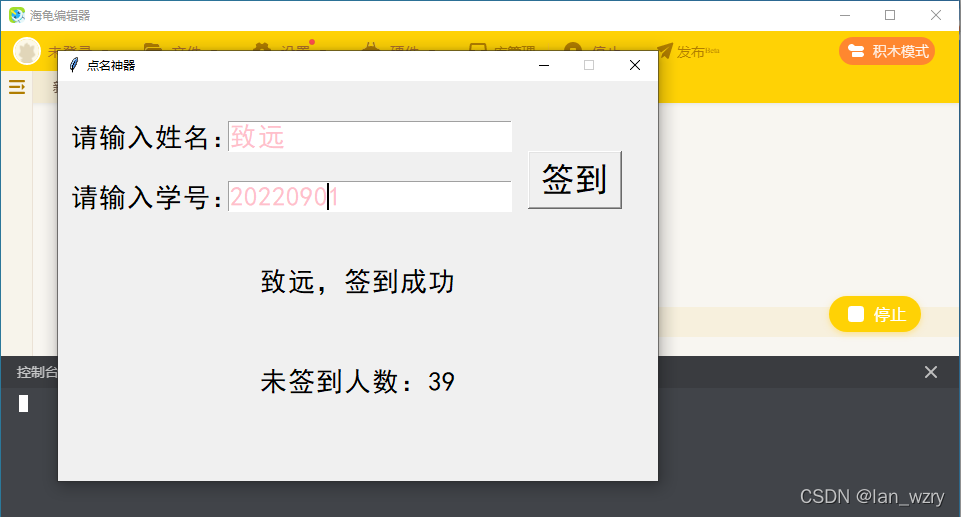 B1 = Button(root, text='签到', font=('黑体', 25), command=name)