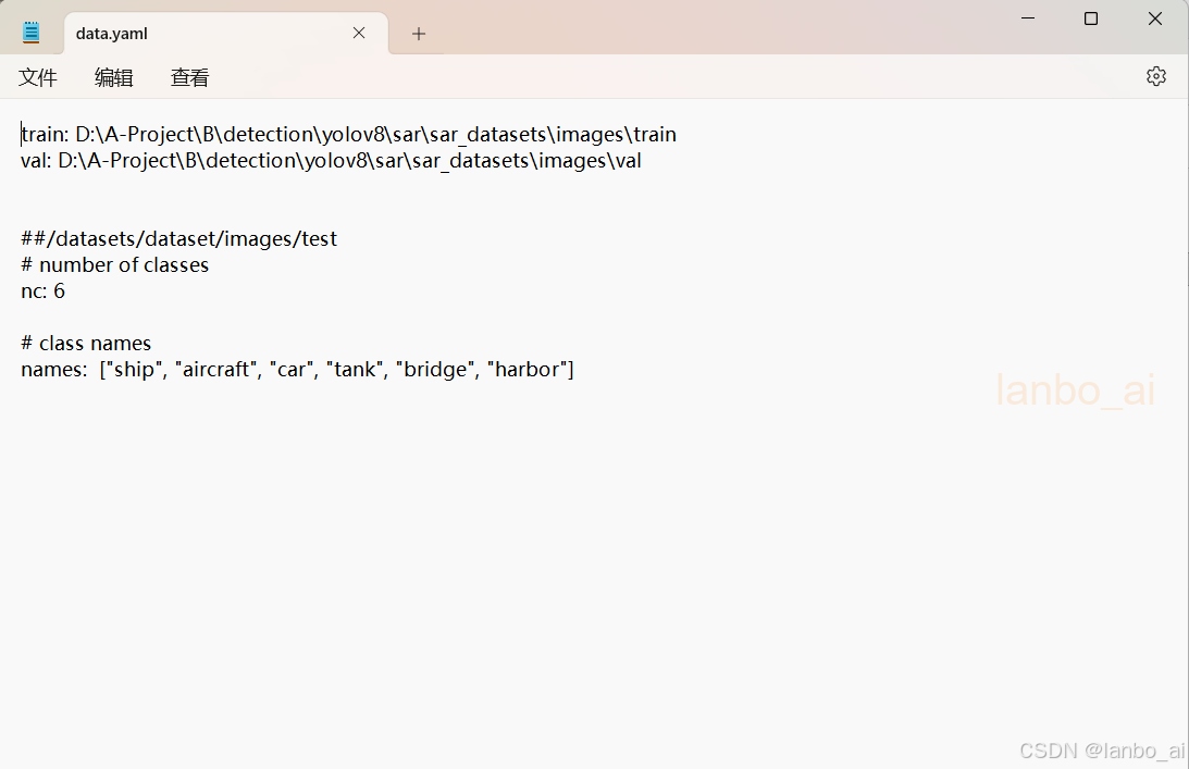 第一步:修改data/data.yaml中的数据集路径