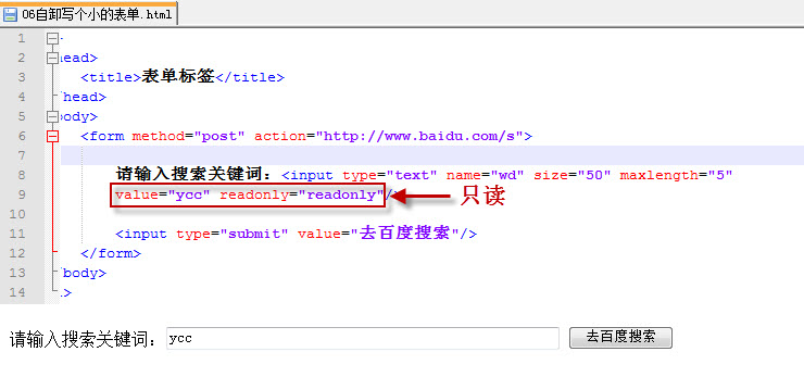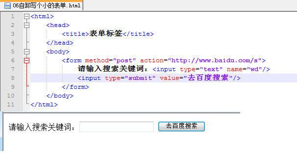<form>标签为表单标签。如果要把数据提交到服务器,则需要将<input>、<textarea>、<select>等表单元素放到form中。