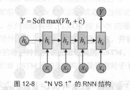 a. 有的时候,问题的输入是一个序列,输出是一个单独的值而不是序列,这种结构通常用来处理序列分类问题 。 如输入一段文字判别其所属的类别,输入一个句子判断其情感倾向,输入一段视频并判断它的类别等等。