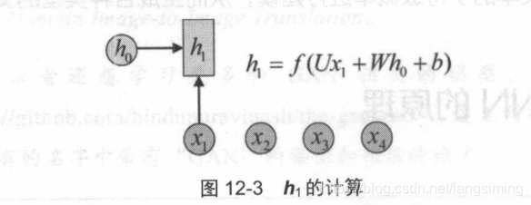 b. h1的计算。h1其实就是一个神经元,它会对输入的数据进行计算,在经过激活函数处理之后输出。图中的 U、 W是参数矩阵 ,b 是偏置顶参数 。 f是激活函数,在经典的rnn结构中,通常使用 tanh作为激活函数 。