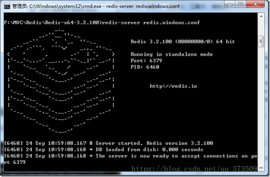 redis-server redis.windows.conf,出现下图显示表示启动成功了