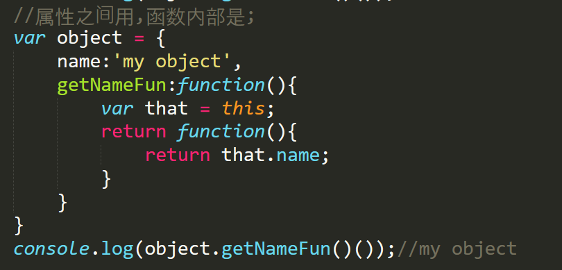 我们在getNameFun内将this赋给that,此时的that指向的是挂载(调用)的对象,即为object,此时在匿名函数中调用that.name会在object上查找相应的数据,而不是在全局上查找,最终打印出myobject。