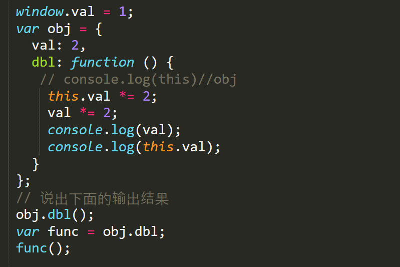 上面解释 更正(自己理解) 全局是2,此时 this.val, 和val 指向的都是window 的全局2 ,经过两次乘以2得8