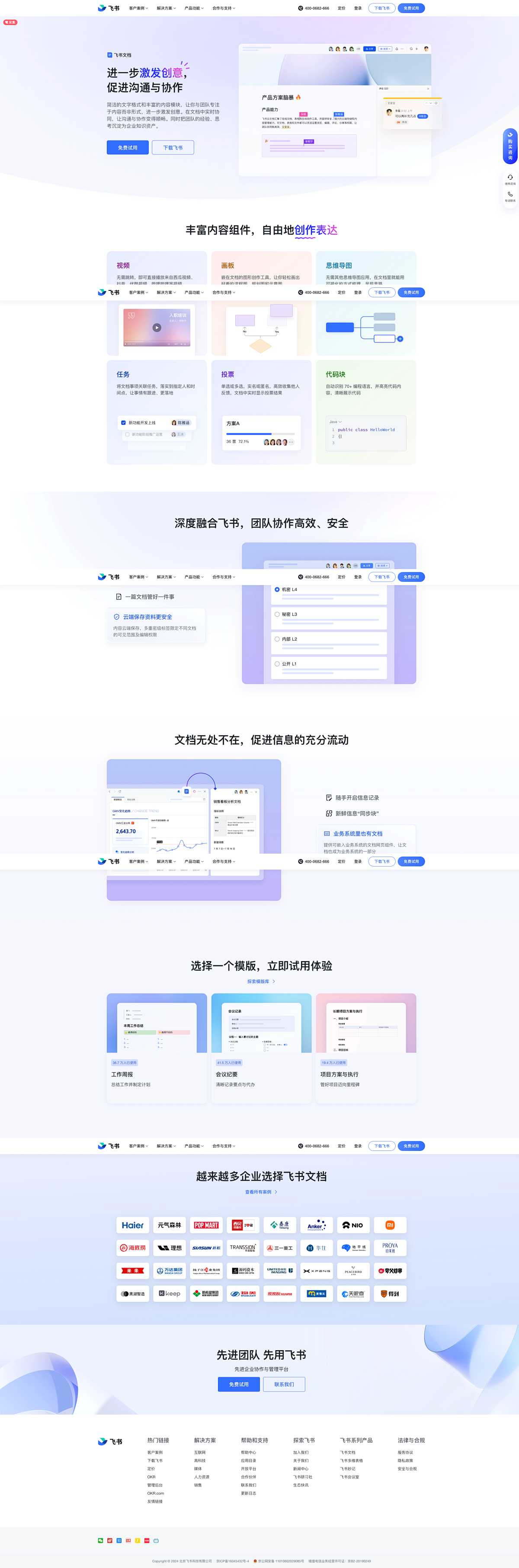 1. 精准锚定用户需求:首屏用简短有力的slogan直击产品核心价值(如“先进团队,先用飞书”),快速传递产品能解决的核心痛点,这也是兰亭妙微UI设计公司在官网设计中始终坚持的“用户痛点优先”原则;