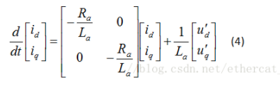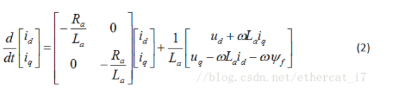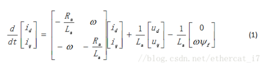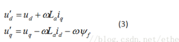 以隐极永磁同步电机为例,其交直轴电感相等,其等效的状态方程为: