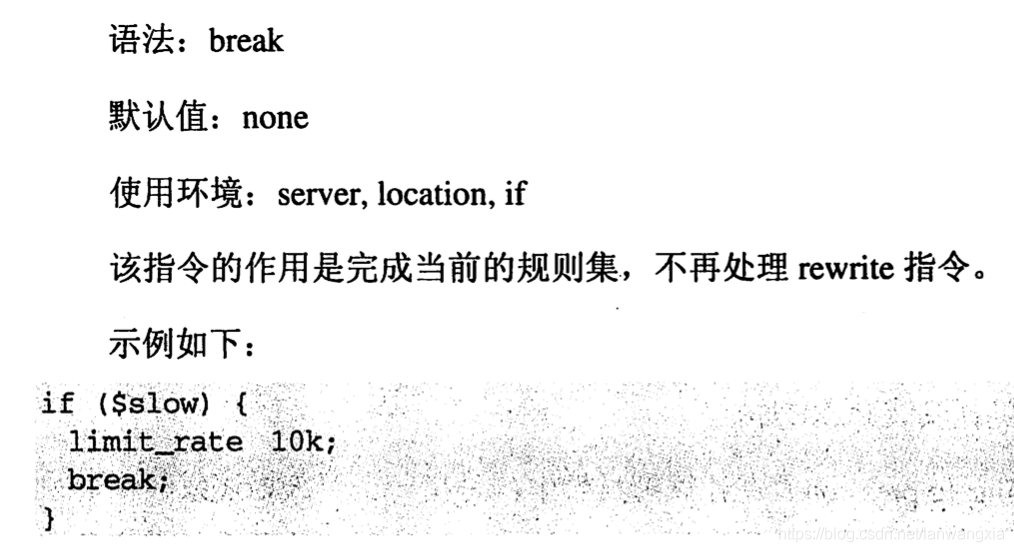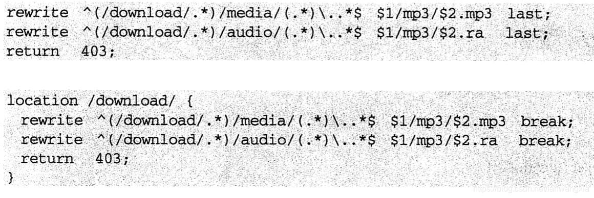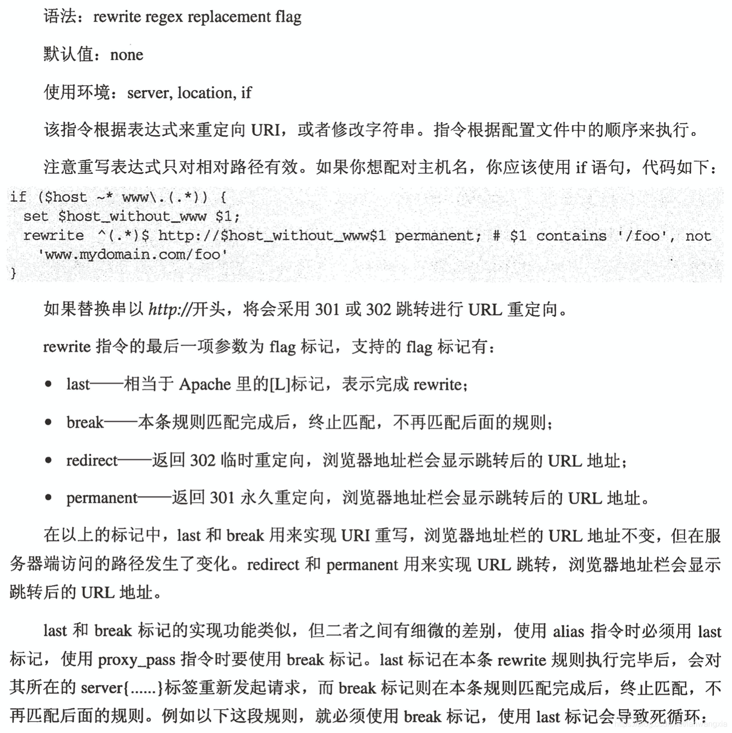 因此,一般在根location中(即location /{......})或直接在server标签中编写rewrite规则,推荐使用last标记,在非根location中,则使用break,例如: