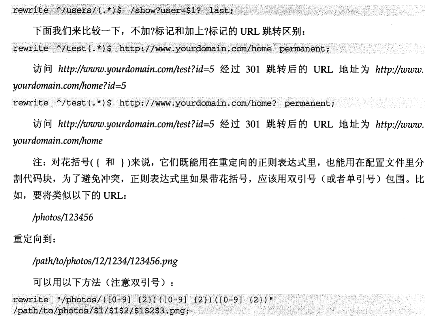 如果被替换的uri中含有参数(即类似/app/test.php?id=5之类的uri),默认情况下,参数会被自动附加到替换串上,你可以通过在替换串末尾加上?标记来解决这一问题。