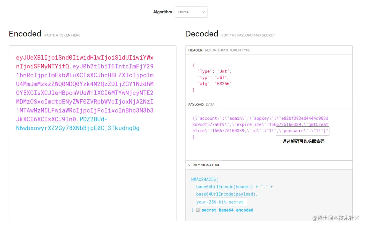 如果在JWT中存储了敏感信息,可以解码出来非常的不安全