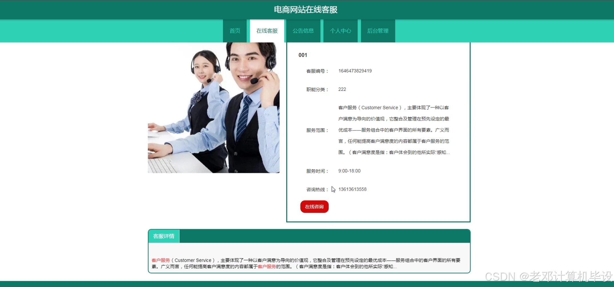 - 在线咨询:提供文字、语音、视频等多种咨询方式,确保用户能够随时随地与客服人员进行沟通。